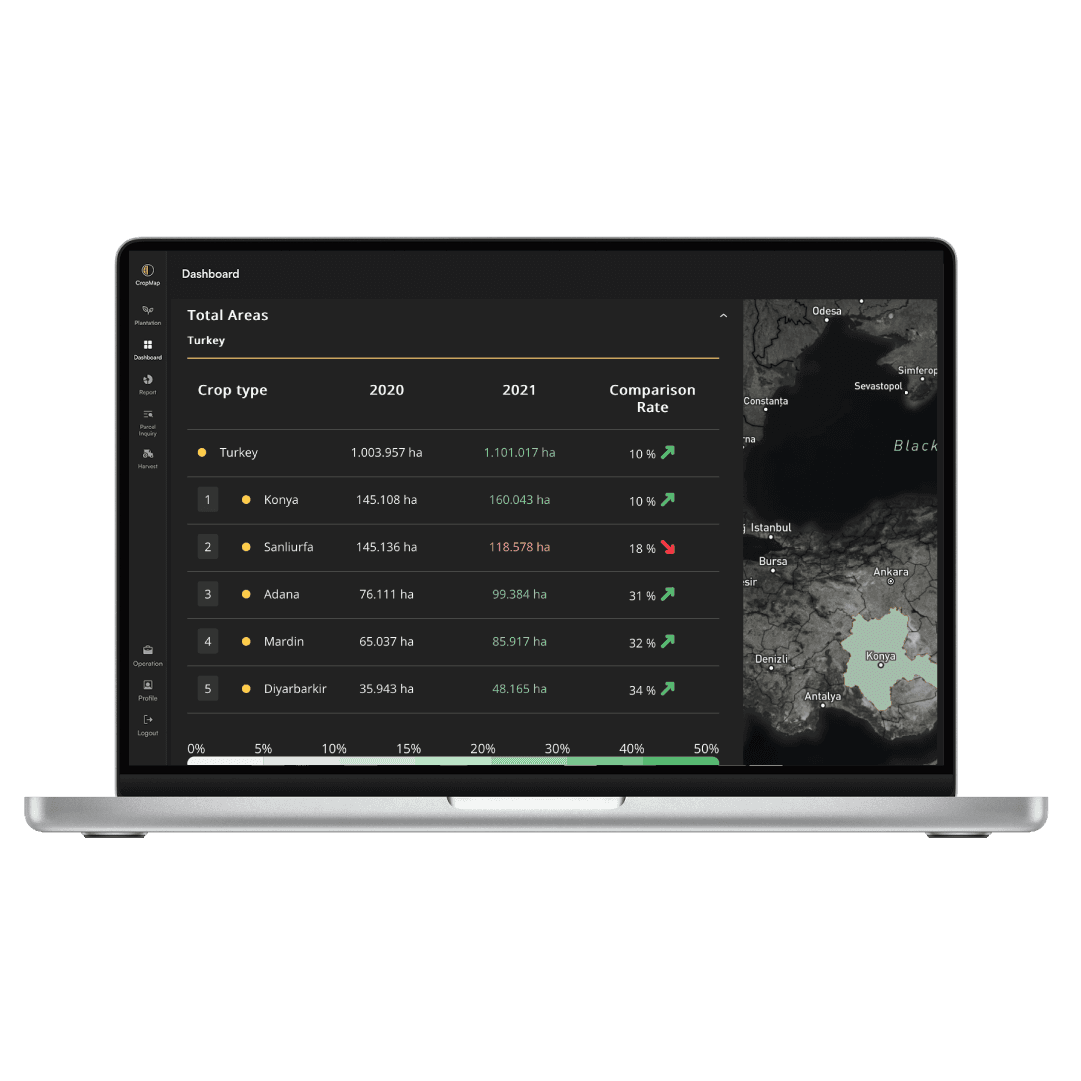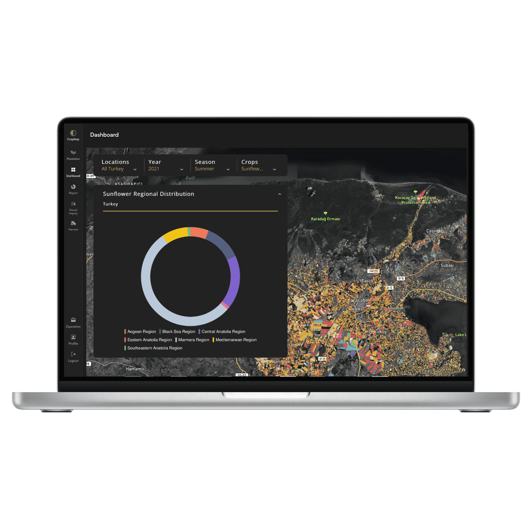 By combining spectral analysis with crop development models, CropMap delivers yield estimations that support procurement targets, investment decisions, and risk assessment at regional and national scale.