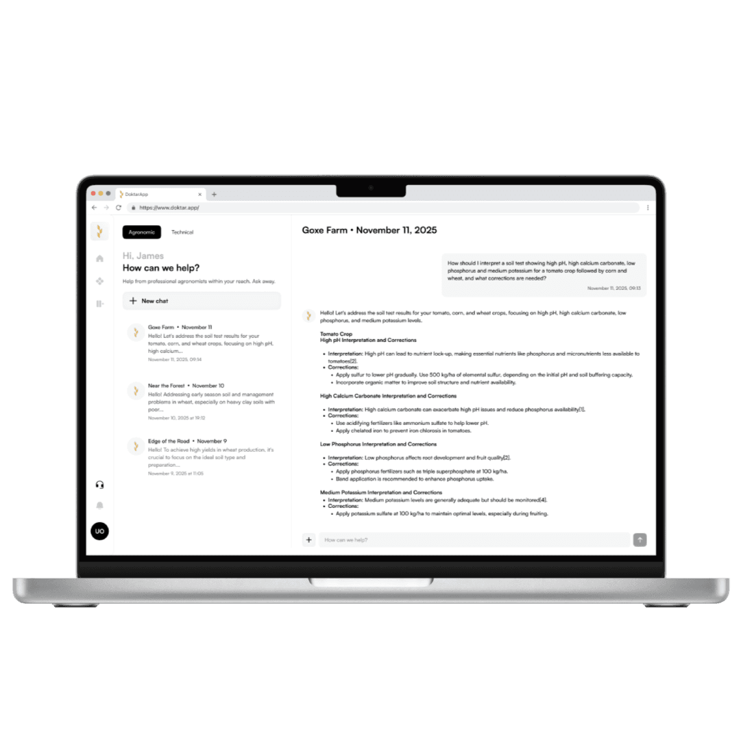 Your integrated and expert-backed assistant Doktar AI synthesizes satellite, sensor, weather, and historical data into actionable recommendations, serving as a decision-support resource that scales with your workload.