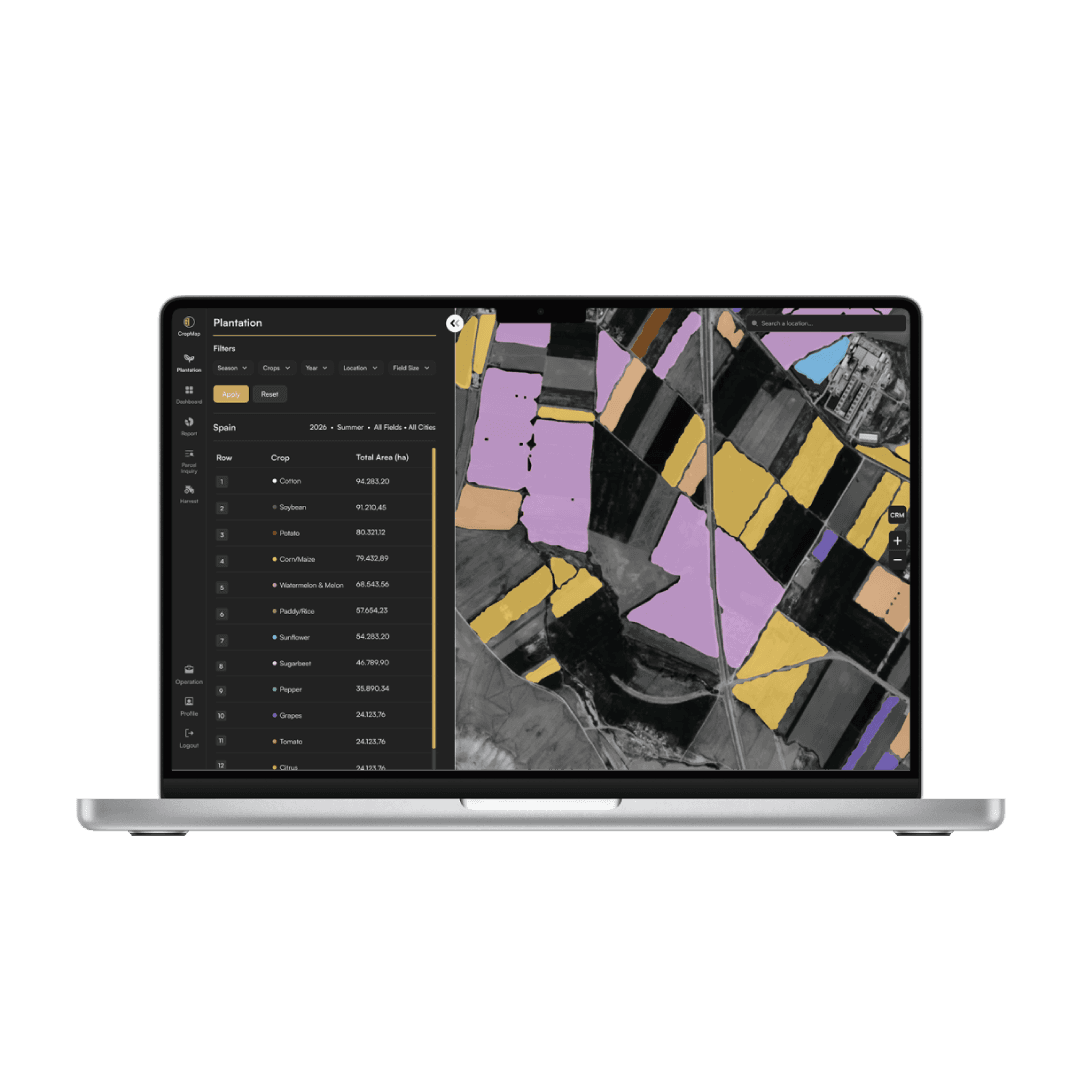 Large agricultural loan portfolios require scalable oversight that does not depend on physical inspections. Parcel-level crop identification combined with field-level health tracking enables your risk and strategy teams to map credit exposure by crop type, identify concentration risk, and align lending strategies with verified agricultural activity.