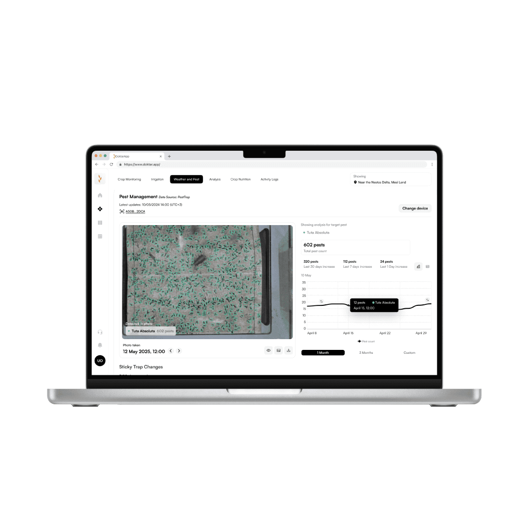 Doktar’s sensor infrastructure and data APIs enable models where payouts are triggered by measured environmental conditions rather than physical damage verification. When predefined thresholds are breached (excessive rainfall, prolonged drought, frost events), the data triggers automated workflows, eliminating the inspection bottleneck.