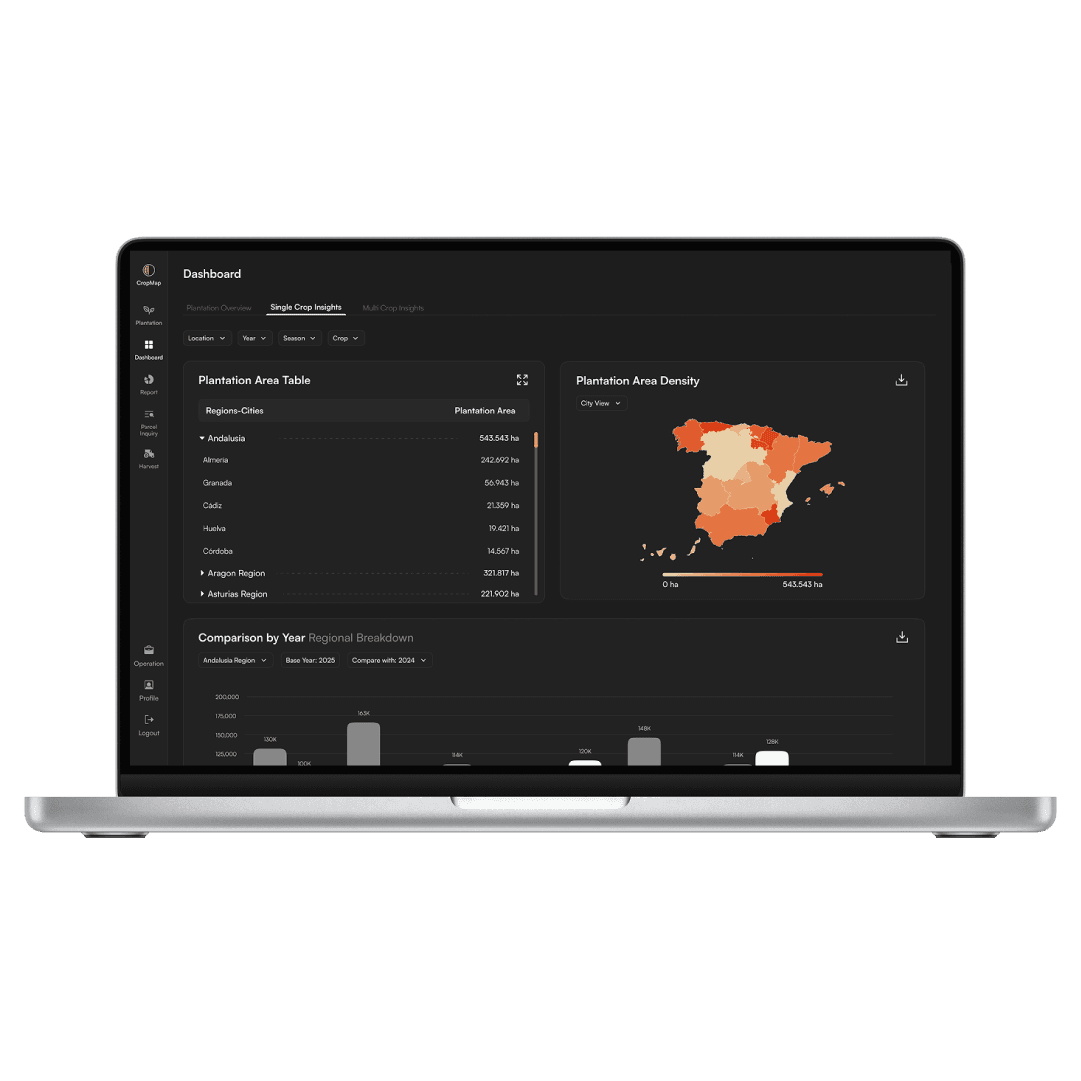 Effective product distribution starts with knowing which crops are in the ground, where, and at what scale. AI-powered satellite analysis identifies crop types and field boundaries at the parcel level, providing the regional planting intelligence needed to align distribution with actual demand.